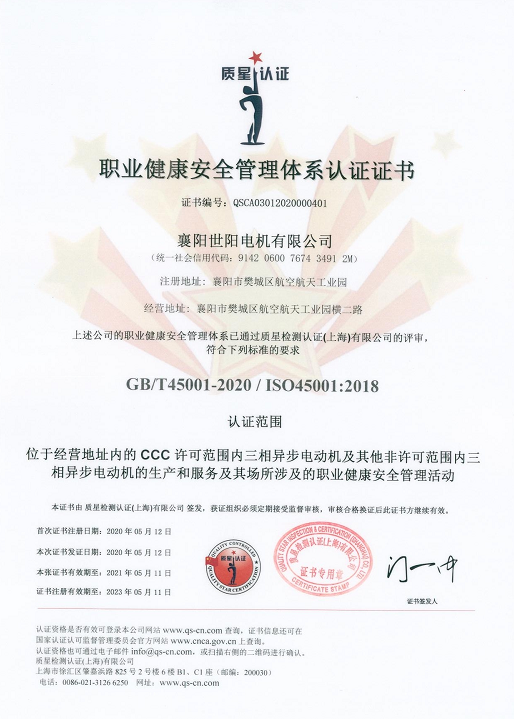 職業(yè)健康安全管理體系認(rèn)證證書(shū)